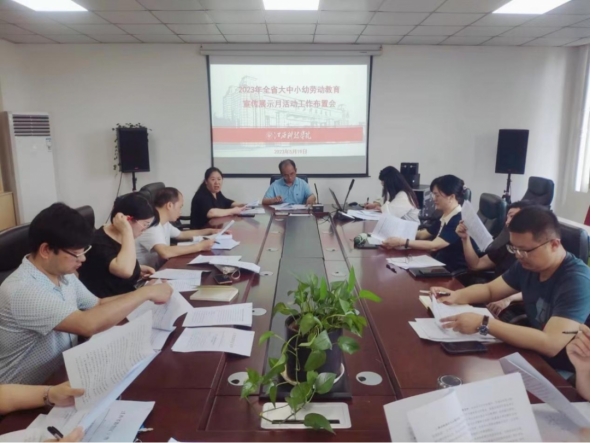 为深入贯彻落实新时代大中小学劳动教育,全面宣传展示我校劳动教育成果,推动劳动教育走实走深,5月19日下午14:30,教务处在J1-314会议室组织召开了2023年全省大中小劳动教育宣传展示月活动工作布置会,就本次劳动教育宣传展示月活动工作进行了具体部署。副校长陈辉、教务处处长张晓宇、副处长王七苟,各学院副院长及相关工作人员参加会议,会议由张晓宇处长主持。