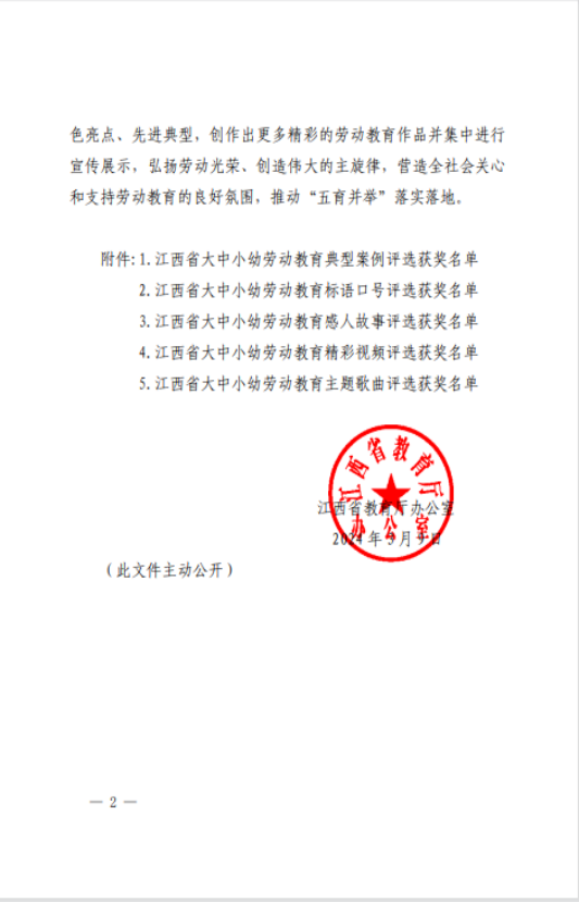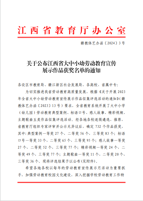江西省大中小幼劳动教育作品评选获奖名单的公示