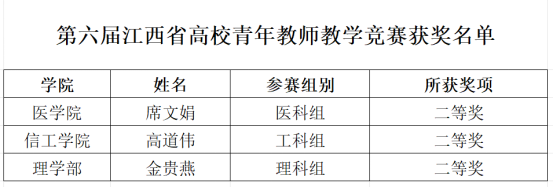喜报!我校教师在第六届江西省高校青年教师教学竞赛中斩获佳绩