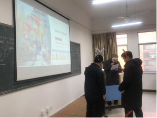 “英语电影角色扮演”活动在12月24日下午15:45-17:00拉开序幕,以比赛形式安排两组同学演绎同一个电影片段,每组同学表演完毕后由四位老师进行评分,六组同学都表演完毕后选出最佳表演组以及影帝影后各一名。为了让同学们能在有限的时间内演绎好各个角色,在活动准备阶段,提前一周的时间将《疯狂动物城》这部电影中的三个精华片段剪辑出来,并把台词剧本发给每个同学,让同学们提前熟练台词并利用课余时间进行排练。本次活动共分为四个环节,分别为暖场游戏之默契大考验、电影回顾、片段演绎、教师评分。最后六组同学表演完毕后,由四位导师共同选出最佳表演小组。