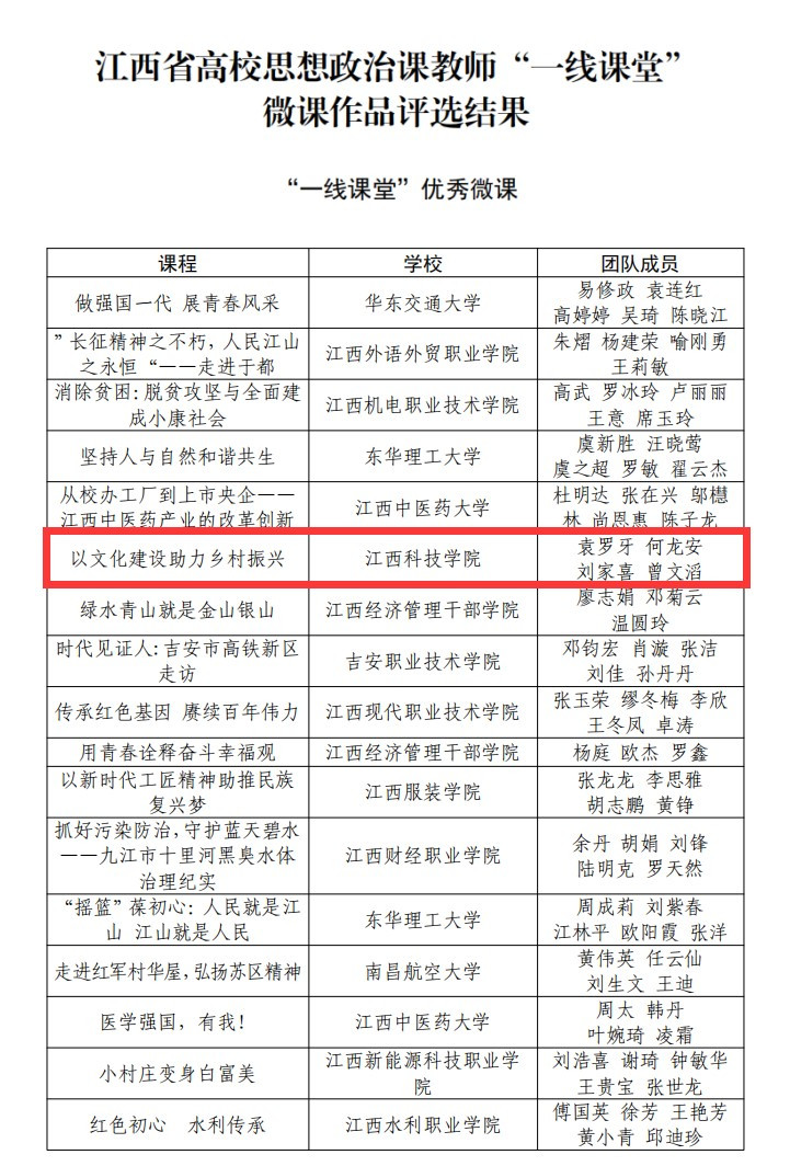 近日,江西省教育厅公布了江西省高校思想政治课教师“一线课堂”微课作品评选结果,我校报送的三门微课作品获评省级优秀微课,学校获评优秀组织单位。