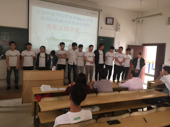 4月28日下午4点,在教一栋416举行了结训仪式,管理学院曾新锋副院长和乐豆家生产总监梁真分别代表管理学院和乐豆家进行了总结讲话。曾新锋首先对同学们此次良好的实习表现表示了肯定并对乐豆家实业有限公司的大力支持表示了感谢。他认为,本次认知实习的成功开展,为校企双方进一步开展深层次、宽领域的合作,培养经济社会发展急需的专业技能型人才提供了新的途径。乐豆家人力资源总监熊竹清表示希望能与365英国上市公司官网继续保持友好联系,继续打造 “校企合作”平台,实现校企双方共赢,共同为经济的创新发展做出不懈努力,为国家、为社会作出更大贡献打下坚实的基础。最后,熊竹清对本次实习的同学们根据表现和考核结果进行了表彰。