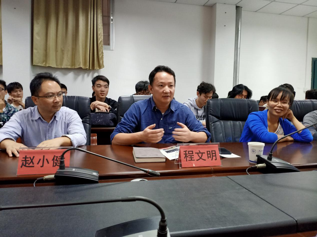 程文明在会上对来宾的到访表示欢迎。他简要介绍了我校的校史,围绕人才培养模式、教学改革、学生考研举措与经验等方面进行了讲解。