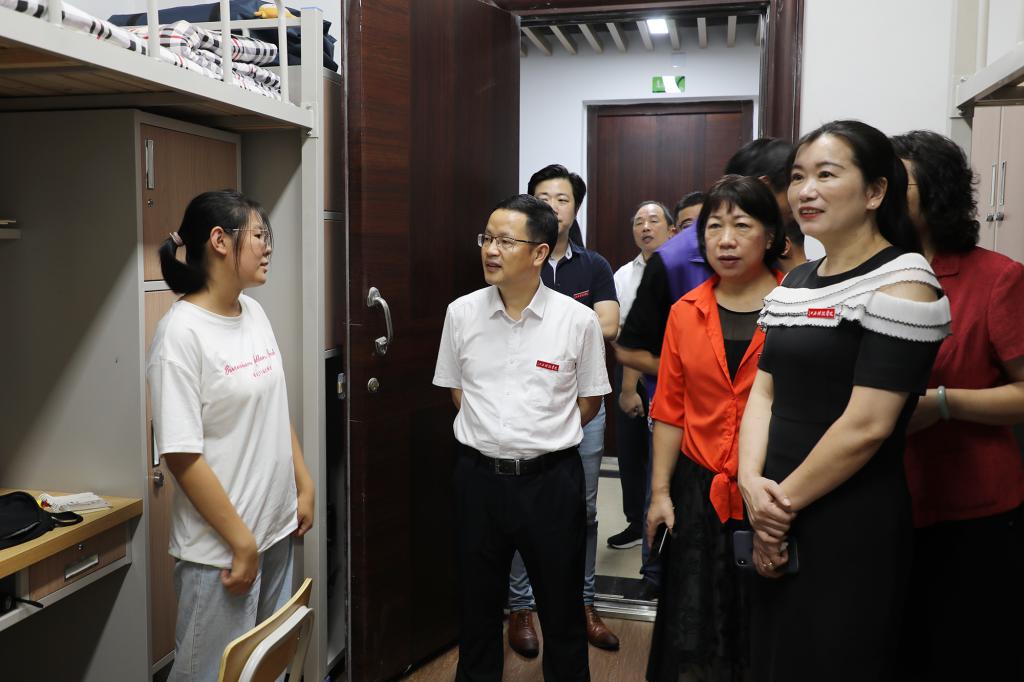 当天上午,校党委书记邓弘、校长张海涛等在家校领导冒雨深入迎新工作一线巡视,了解新生报到工作的开展情况。在各学院迎新接待点、新生开学报到大厅等地,校领导听取了新生报到情况汇报,向参与迎新的老师和同学表示慰问。在家长休息区和学生宿舍,邓弘、张海涛等与新生家长亲切交谈,代表学校欢迎新同学加入江科大家庭,嘱咐大家在学习和生活上遇到困难,可以向学校寻求帮助;鼓励大家做好人生规划,在江科学有所成,并感谢家长对学校的信任和支持。