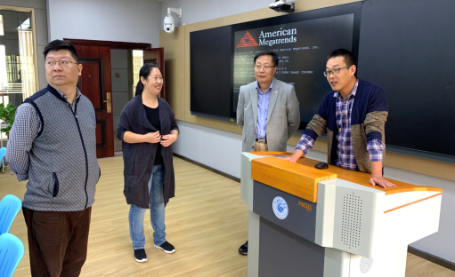 考察中,陈石俊副校长对智慧教室预计使用情况、使用率、可容纳学生数、适用课程、排课等相关问题进行了了解,教务处副处长张晓宇从智慧教室的日常录课功能、便捷操作、教学资料存储、上课模式等方面进行了汇报。在参观了智慧教室主机机位后,陈石俊副校长对主机房温度偏高、噪音较大等问题提出了改进意见和建议。