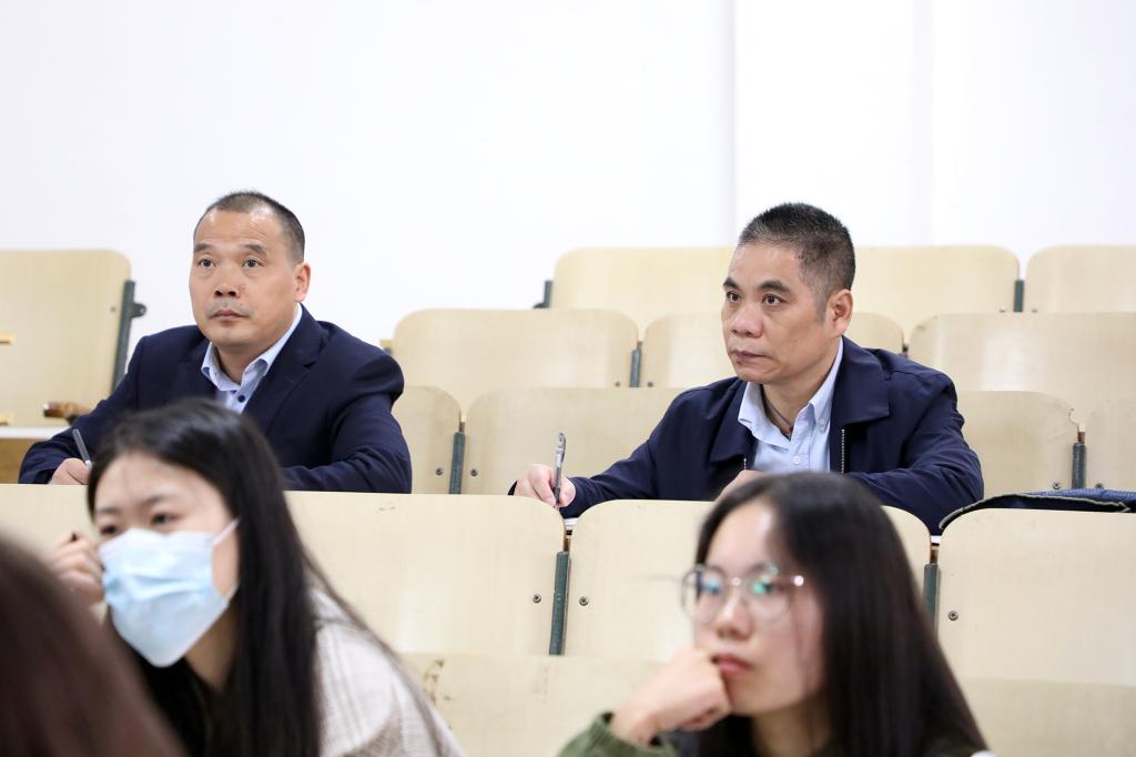29日上午,黄辉玲走进J12-401教室,和同学们一起聆听了鄢常勇老师的讲授的《毛泽东思想和中国特色社会主义理论体系概论》。闵桂林则在J5-102教室与同学们一道上了由袁罗牙老师讲授的《马克思主义基本原理概论》课。课堂上,校领导全神贯注听讲,认真在本子上记录讲课内容。课后,校领导与教师就授课方式方法进行探讨,与同学们就课程内容学习进行交流。校领导还勉励同学们要上好思政课,从一堂堂生动的思政课中汲取精神力量;要珍惜大学学习时光,努力成长成才,在新时代有新担当、新作为。同学们备受鼓舞,纷纷表示要在学习生活中更认真、更投入,用拼搏奋斗的青春书写最绚烂的人生篇章。