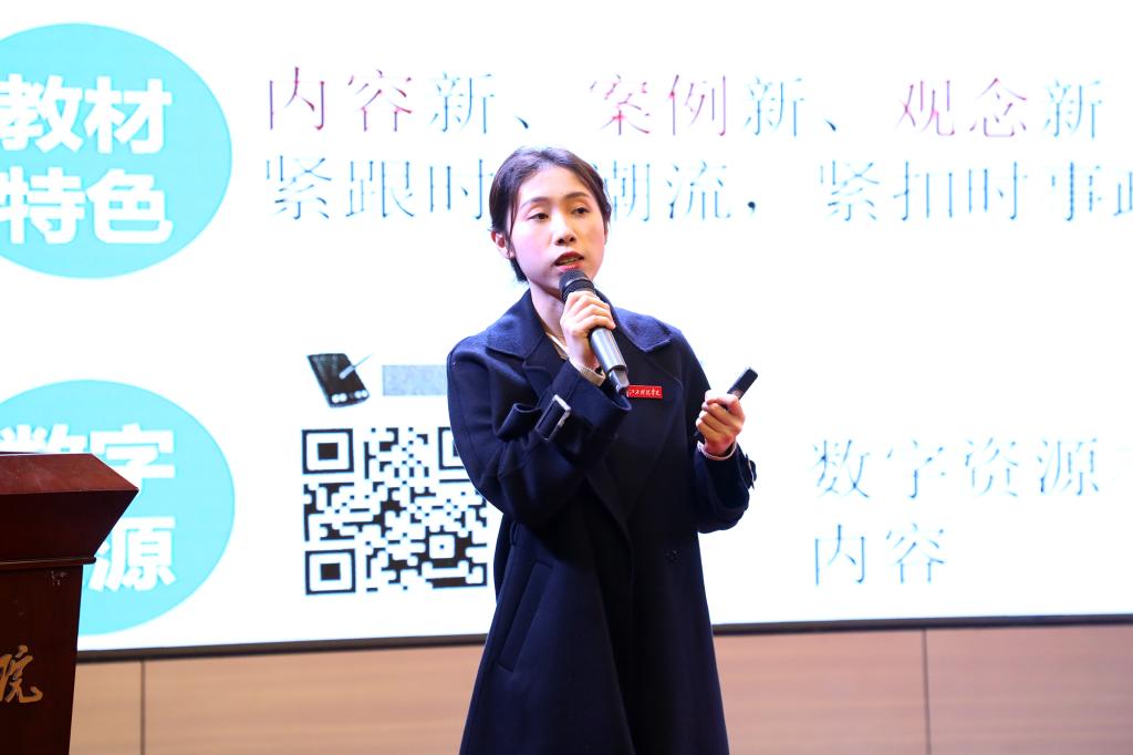 示范课由文化与传媒学院教师苏妍主讲。她的授课内容是《新闻采访与写作》中的“融合新闻报道”。苏妍老师在课上结合丰富的案例分析,自然融入思政元素,用有趣的语言向同学们深入浅出地讲解了融媒体的概念、融合新闻报道概念、融合新闻报道的样态类型、融合新闻报道特征、融合新闻报道的启示意义、融合新闻报道的展望等内容。精彩的授课内容博得现场观众的热烈掌声。