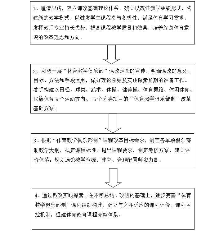 4、完成、确定各俱乐部制教学大纲、课程标准、考核方案。建立、完成课程评价、质量监控体系。