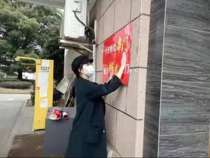 艺术设计学院的陈羽喆,在了解并掌握疫情相关预防知识和有关情况后,毅然响应家乡号召,积极投身疫情防控第一线,主动与社区负责人取得联系,和社区工作人员及志愿者一同参与社区防疫工作。她还搜集宣传标语,制成海报,张贴在各个街头转角处、小区楼道口等,用通俗易懂的文字确保群众对疫情预防的认识,引导居民自我保护,增强居民自我防控和健康管理意识。